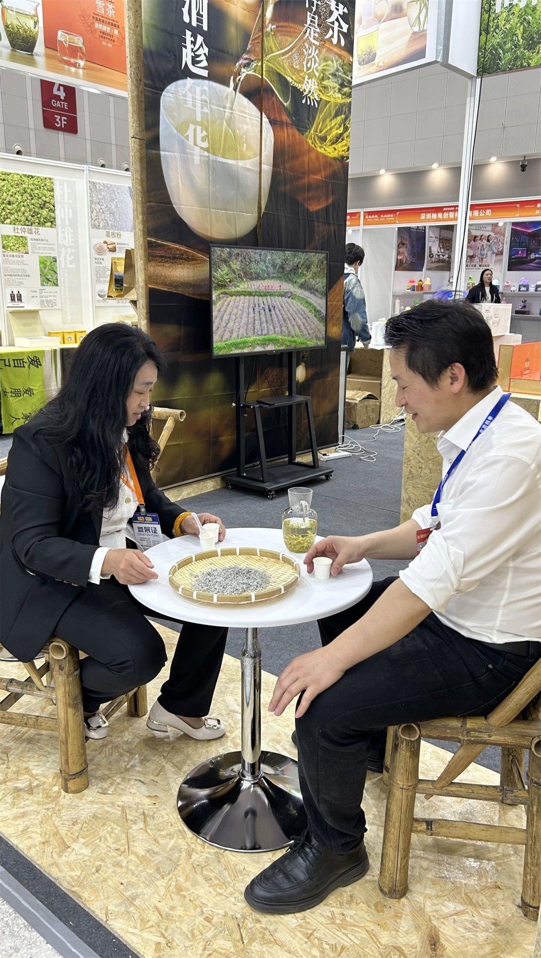 同时展出的张家界葛根粉亦为当地标志性特产。葛根粉具有退肝火、健脾胃、滋阴壮阳、补虚益气之功效,兼具抗衰健美等保健价值,素有“皇食品”之盛誉。杜仲雄花茶则具有通肠润肺、滋阴补阳、双向调节血压、增强免疫力等功效,茶汤色粉黄,蜜香味浓,回味甘甜绵长。蜂蜜产品同样是张家界深山中天然孕育的佳品。这些产品充分展现了张家界得天独厚的自然禀赋和湖南家乡味道对品质的极致追求。